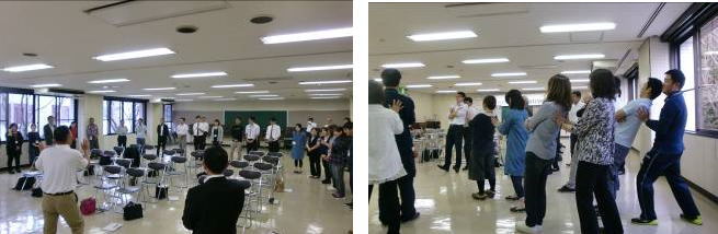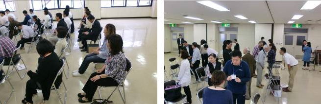 まず、初めて出会った方々と交流を深めるためのレクリエーションを行うことで、気持ちもやわらぎ、短時間でよい交流ができました。 |