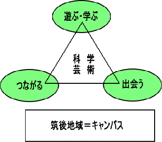 | 「筑後チルドレンズ・キャンパスは、自分が生まれ育った町だけでなく、筑後というもっと大きな地域全体を誇りに感じてくれる「筑後の子どもたち」を育てていく、みんなの原っぱをめざしています。 二度とない子ども時代を思いっきり遊び、仲間や地域の大人との「出会い」の中で、大地に根ざした学びを体験し、今度自分たちが大人になったとき次の世代の「筑後の子どもたち」を育てていく人間になる。その遊びと学びを支援するキャンパスです。 今日学んだことが明日に「つながって」いく。 この町があの町と「つながって」いく。 自分たちの「いのち」がいかに地域の自然の恵みの中で、そして先輩たちの「くらしの歴史」の中で、連綿とした長い「つながり」によって支えられているか。 そのことを、水やまちの物語として実感してもらう、旅の体験を提供します。 本物のアートや科学の現場に触れ、ゼロからものを作り、考え出していく創造の喜びにふれる、チャレンジ精神をきたえます。 「ぼくこそは、わたしこそは、ちくごん子どもったい!」と胸を張ってみんなに伝えたい君、ちるきゃん原っぱに集まれっ! |