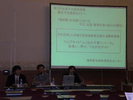 ところで、私たちが参加した「韓日平生教育セミナー」はどうなっていたかというと、セミナー会場はBEXCOセンター内にある多目的ホール302号会議室で介されました。 今回の「韓日平生教育セミナー」では韓国からの発表が2本、日本からの発表が3本でした。 韓国側からは、「女性人力資源開発のための女性人力資源開発センターの運営プログラム分析」と題して女性人力資源開発センター教授 金 明姫さんの発表、「釜山地域平生教育情報センターの取組」と題して釜山地域平生教育情報センター課長 文 点洪さんの発表がありました。 日本側からは、「日本における大学と生涯学習の現状と課題―北海道教育大学での取り組みを事例にー」北海道教育大学生涯学習教育センター教授 内田 和浩さん、「いなみ野学園(高齢者大学)における生涯学習の取組」(兵庫県)学生自治会副会長 富田 鉄哉さん。 当社会教育総合センターからは「ITを活用した次世代家庭教育支援方法開発事業について〜ウェブサイト「ふくおか子育てパーク」出会い、学び、つながるサイト〜」の発表を行ってきました。本開発事業の背景や内容、各サイトの紹介、利用状況や今後の課題等についてパワーポイントを使いながら詳しく発表しました。発表の最初に、ハングル語で自己紹介と日本語で発表する旨の挨拶をしましたところ、大変受けまして拍手をいただきました。事前に勉強した甲斐がありました。カムサハムニダ。 今回の「韓日平生教育セミナー」では、釜山大学教授(釜山地域平生教育情報センター副委員長) 朴 在国先生に通訳から韓国滞在のお世話と大変お世話になり感謝申し上げるとともに、先生のご協力で無事修了することができました。 釜山地域平生教育情報センターとの交流は今後も続きまして、11月には釜山広域市立図書館関係者が福岡に来日されます。暖かくお迎えするつもりです。 最後に、韓国釜山は、飛行機で1時間以内、ビートル船で2時間50分とほんとに近い隣の外国です。皆さんの是非釜山に行ってみてください。 今後とも、日韓交流とお互いの国の生涯学習推進・発展に貢献できるよう良好な交流を図って行きたいと願っています。 |