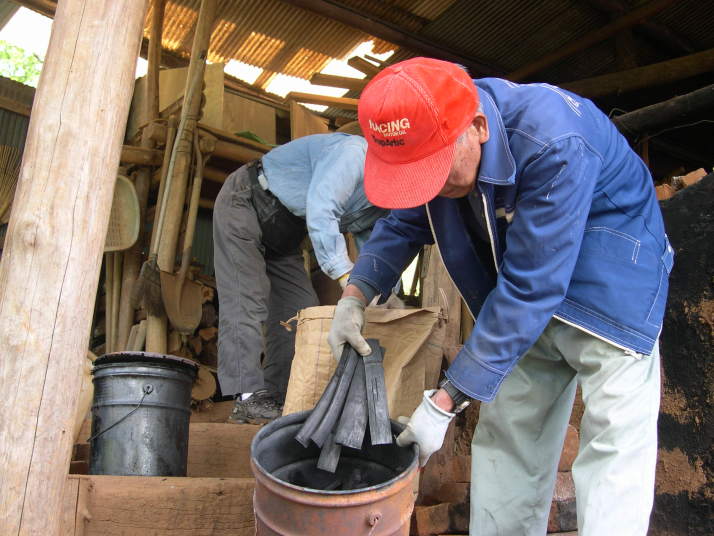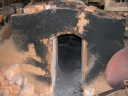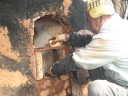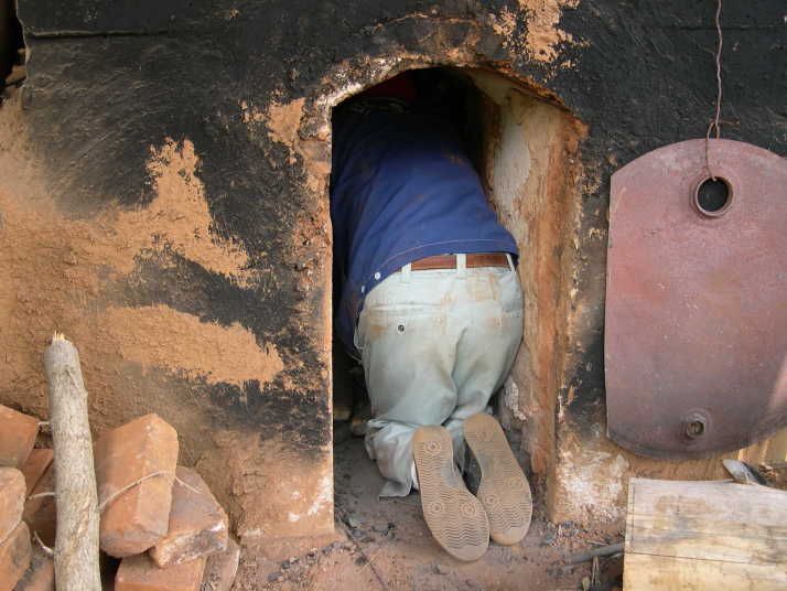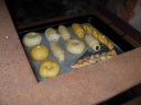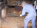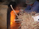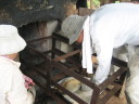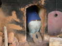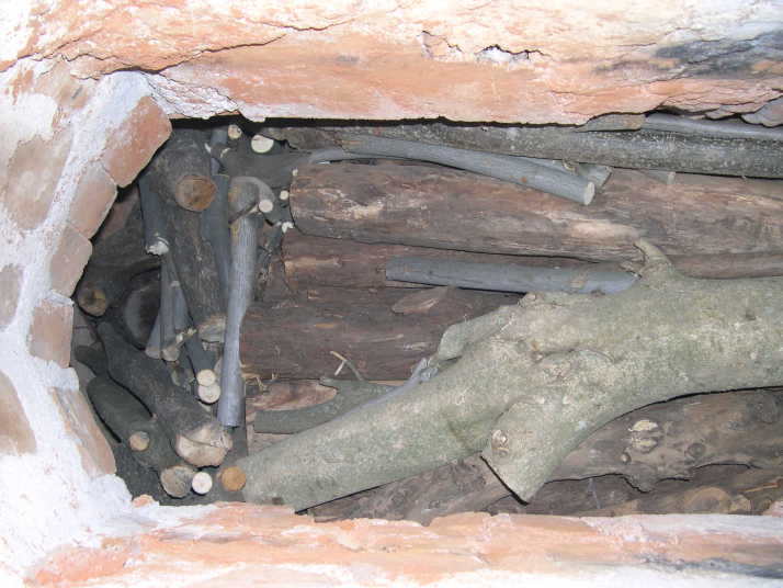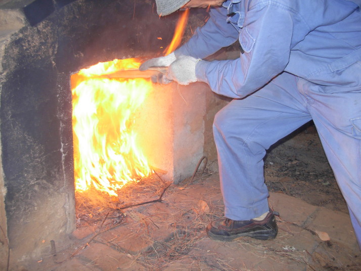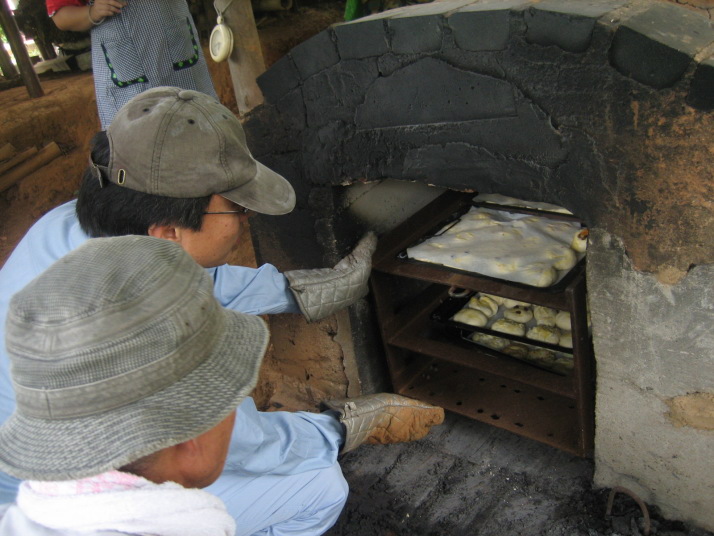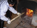十分に釜が熱くなったら火を落とし、パンが焼ける状態になります。余熱でパンを焼くわけです。 |