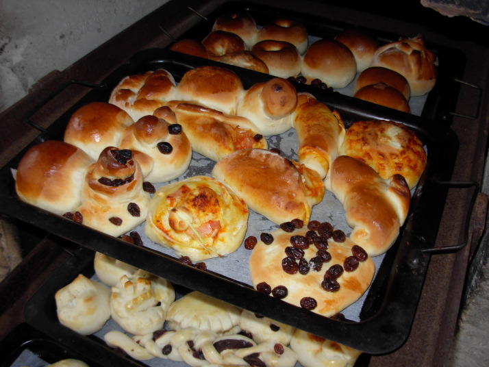 ●焼き上がるまで、焼きむらのないように、何度もパンの場所を変えます。 |