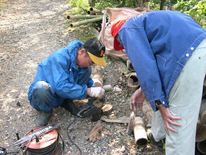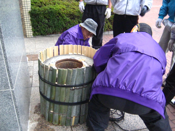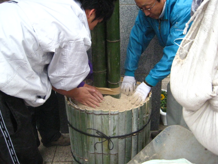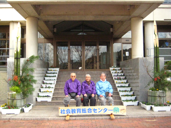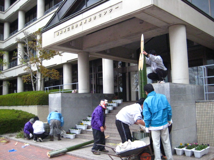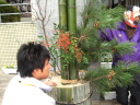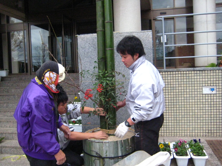 平成19年12月1日(火)、寒風の中、職員と一緒にセンターの玄関に門松をつくりました。