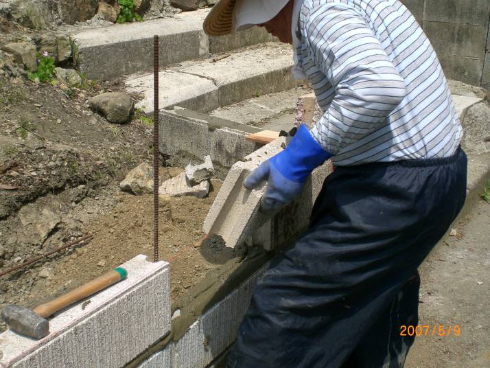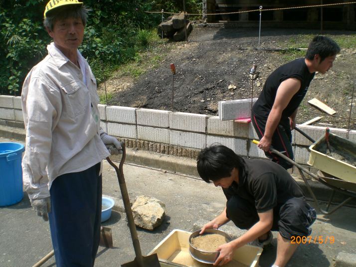 平成19年5月9日(水) あじさい広場にブロック塀を作りはじめました。