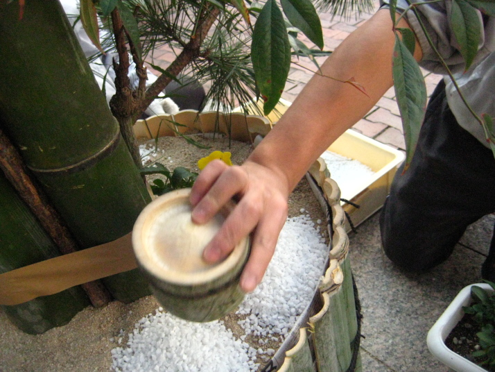 ●最後に化粧砂を表面にまいて出来上がり。 |