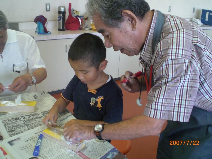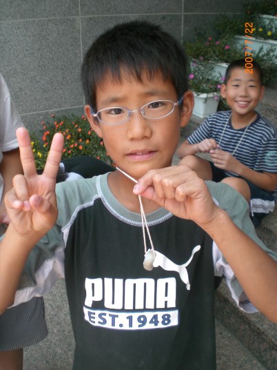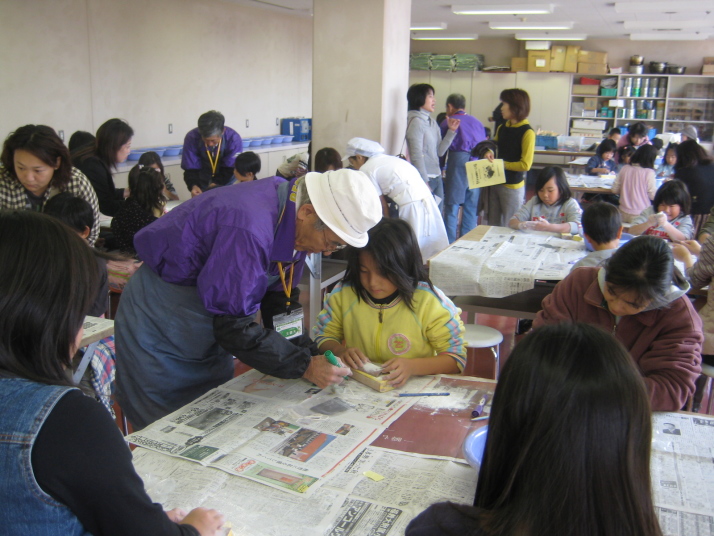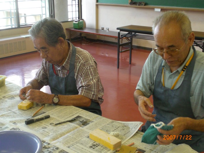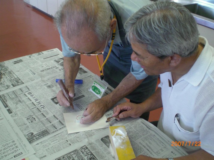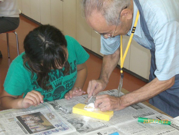平成19年7月23日(月) 勾玉(まがたま)作りの学習ボランティアを行いました。