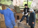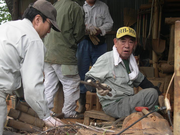 パン窯には、田中さんと西さん、センターの職員も一緒に朝早くから火を入れて準備をしました。