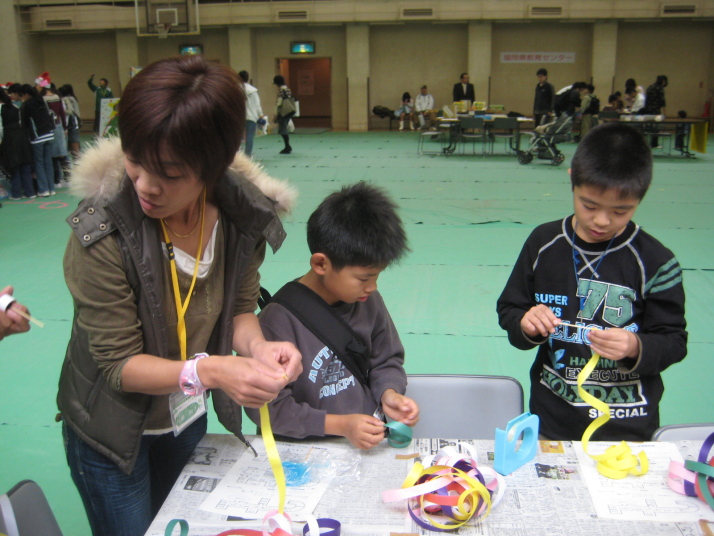 平成19年11月11日(日)に「ワクドキ 体験カーニバル」で、紙テープゴマ作り、勾玉作り、