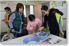 平成28年12月18日(日)に開催された「ミニ門松づくり体験塾」では、「若杉の会」から5名のボランティアとして参加しました。